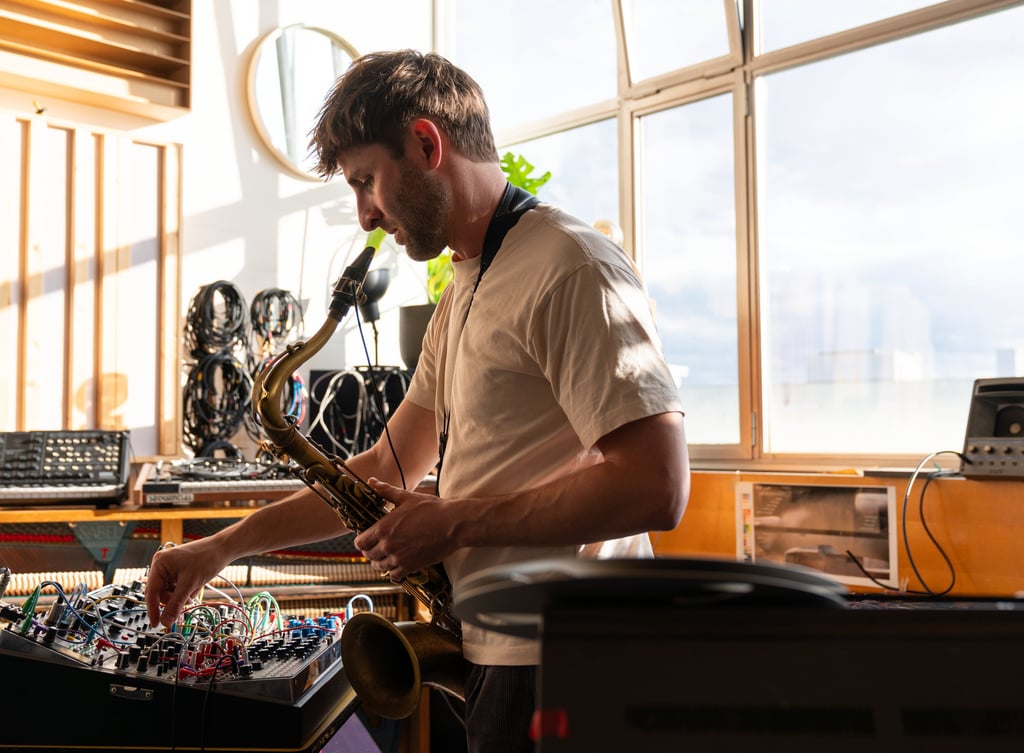 Raised in a musically rich environment and later trained in Jazz Performance at Berklee College of Music, Huber began on piano, drums, and guitar before finding his voice in the saxophone — later extending to clarinets and flute. After time in the NYC Jazz scene, his work evolved toward a more exploratory, genre-blending approach. Under his own name, he has released projects such as I Am Sound and the acoustic quartet album Heir.