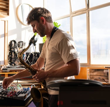 Christoph Huber is a Swiss musician whose creative world centers around the tenor saxophone — expanded through electronic effects, modular synthesis, and experimental performance techniques. Rooted in jazz and shaped by texture, technology, and improvisation, his sound blurs the lines between the acoustic and the electronic.